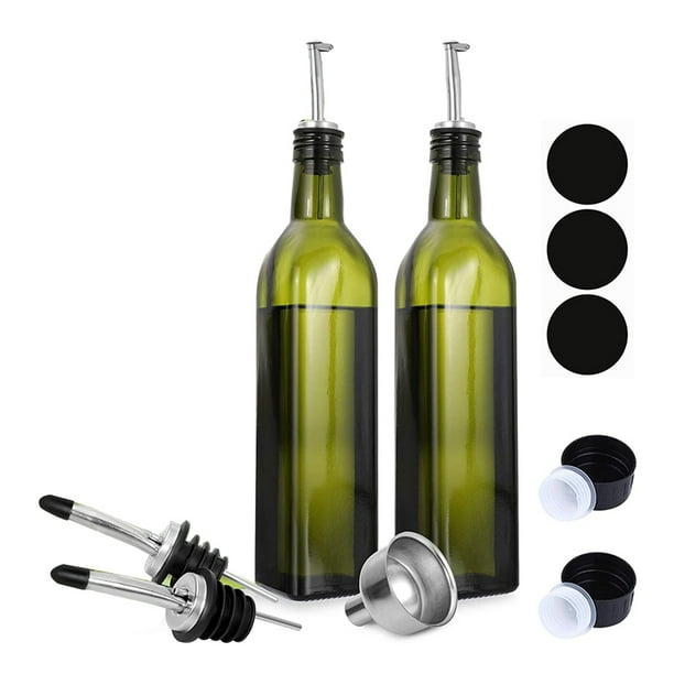 Deoxygene 2 Pieces 17 Ounces Approximately 500 Grams Glass Olive Oil Dispenser Bottle Set Dark Green Walmart Com